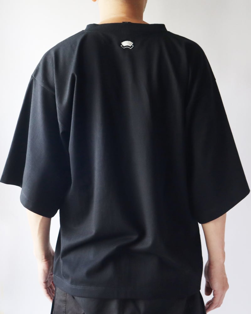 肉厚で肌触りの良い綿素材使用した大きめの袖が特徴の五分袖カットソー。着物の袖を思わせる幅広の袖口は、着用することで肩から腕にかけて品のある落ち感を生み出し、優雅な動きを適度に演出する。